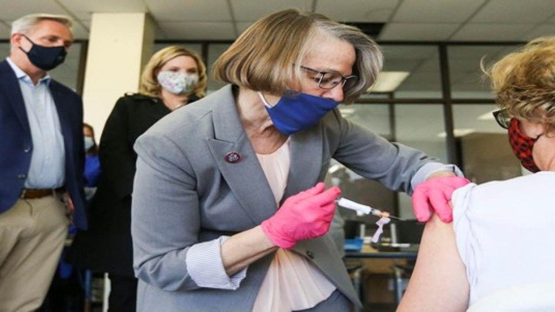 When COVID-19 vaccines first became available, Miller-Meeks was an outspoken advocate for them. She visited vaccination sites in every county in her district and administered the shots herself in at least thirteen communities.