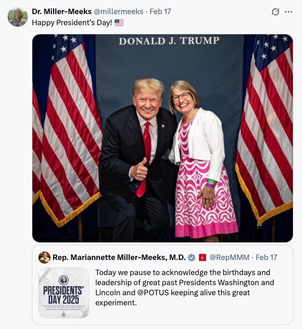 I can’t guess how things will play out in the Congressional race, but I can confidently predict that February 17, 2025 will not be the last time Miller-Meeks shares this photo on her social media.