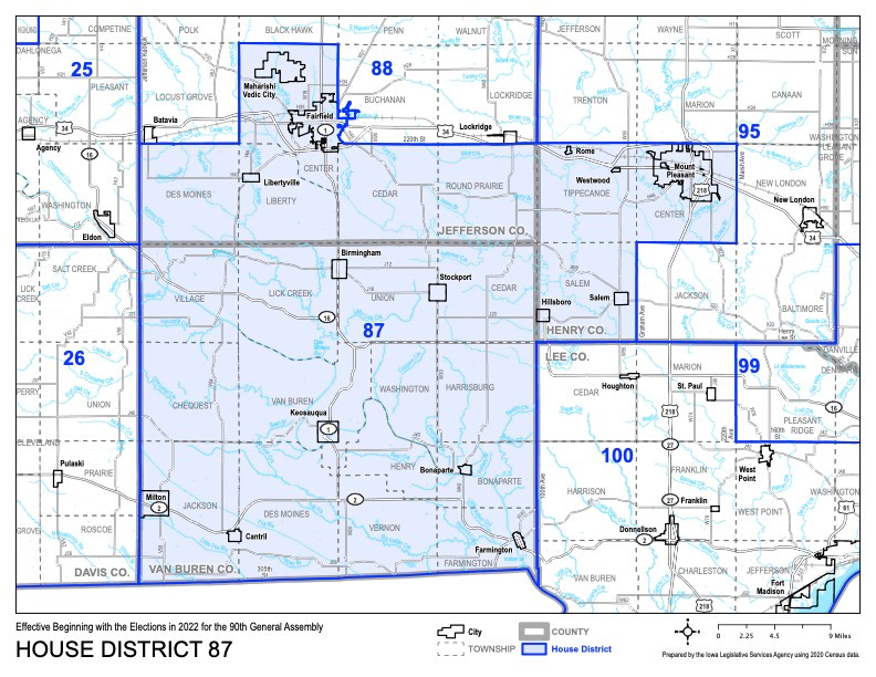 The political map Iowa lawmakers adopted in October 2021 spelled trouble for Mitchell. He had previously represented all of Henry County, plus parts of Washington, Jefferson, and Lee counties. Now he was one of two Republican incumbents drawn into the new House district 87.