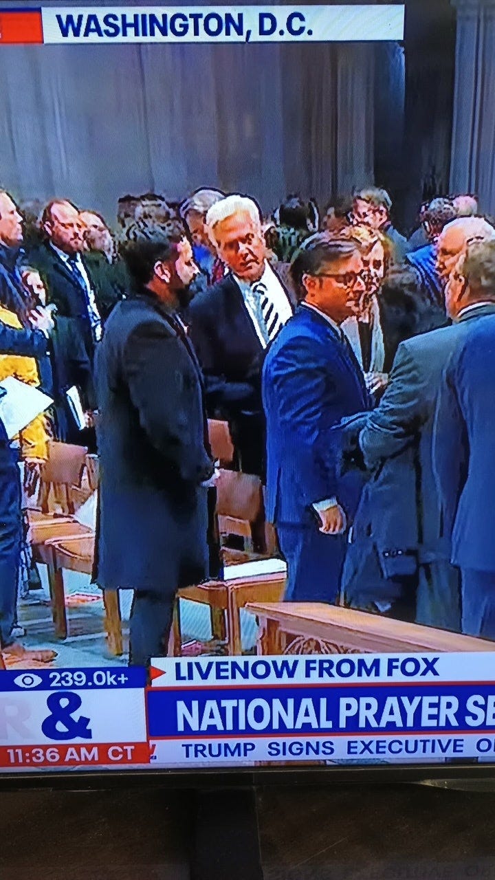 David Pautsch near House Speaker Mike Johnson in Washington National Cathedral on January 21 (screenshot from television coverage)