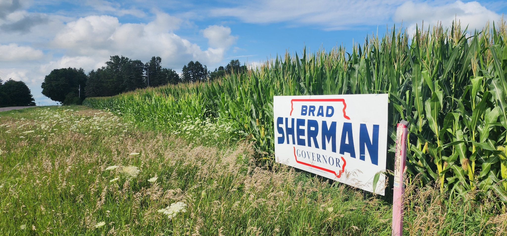 Former State Reprepresentatve Brad Sherman’s campaign worked hard to get yard signs in place across the northern Iowa RAGBRAI route. A friend who rode RAGBRAI confirmed there were tons of Sherman signs. She couldn’t recall seeing so many political signs for one candidate on the ride before.