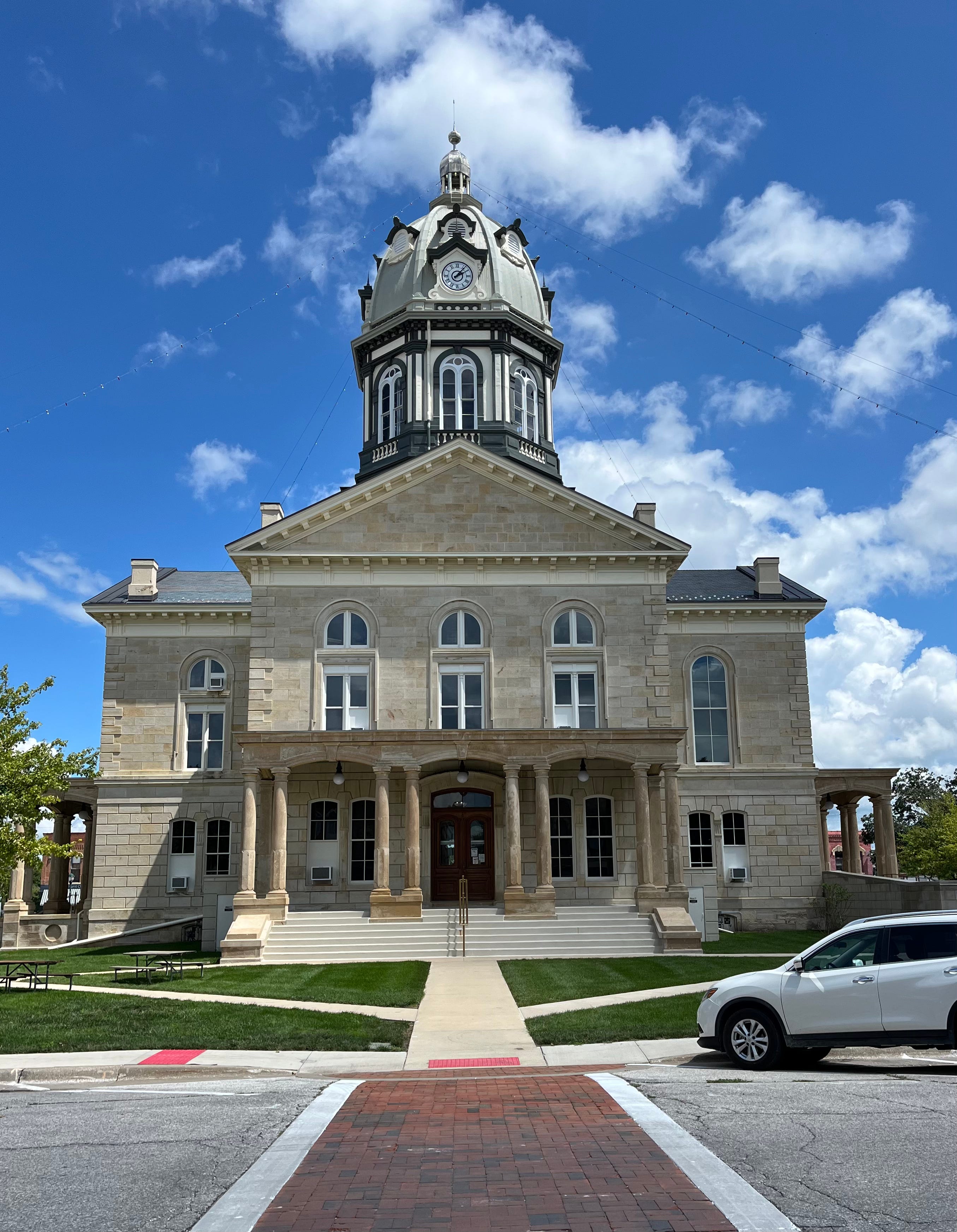 I had some quality time in Winterset this weekend with other members of the Iowa Writers’ Collaborative. If you haven’t been there for a while (or ever), it’s worth a visit. The Madison County courthouse is gorgeous:
