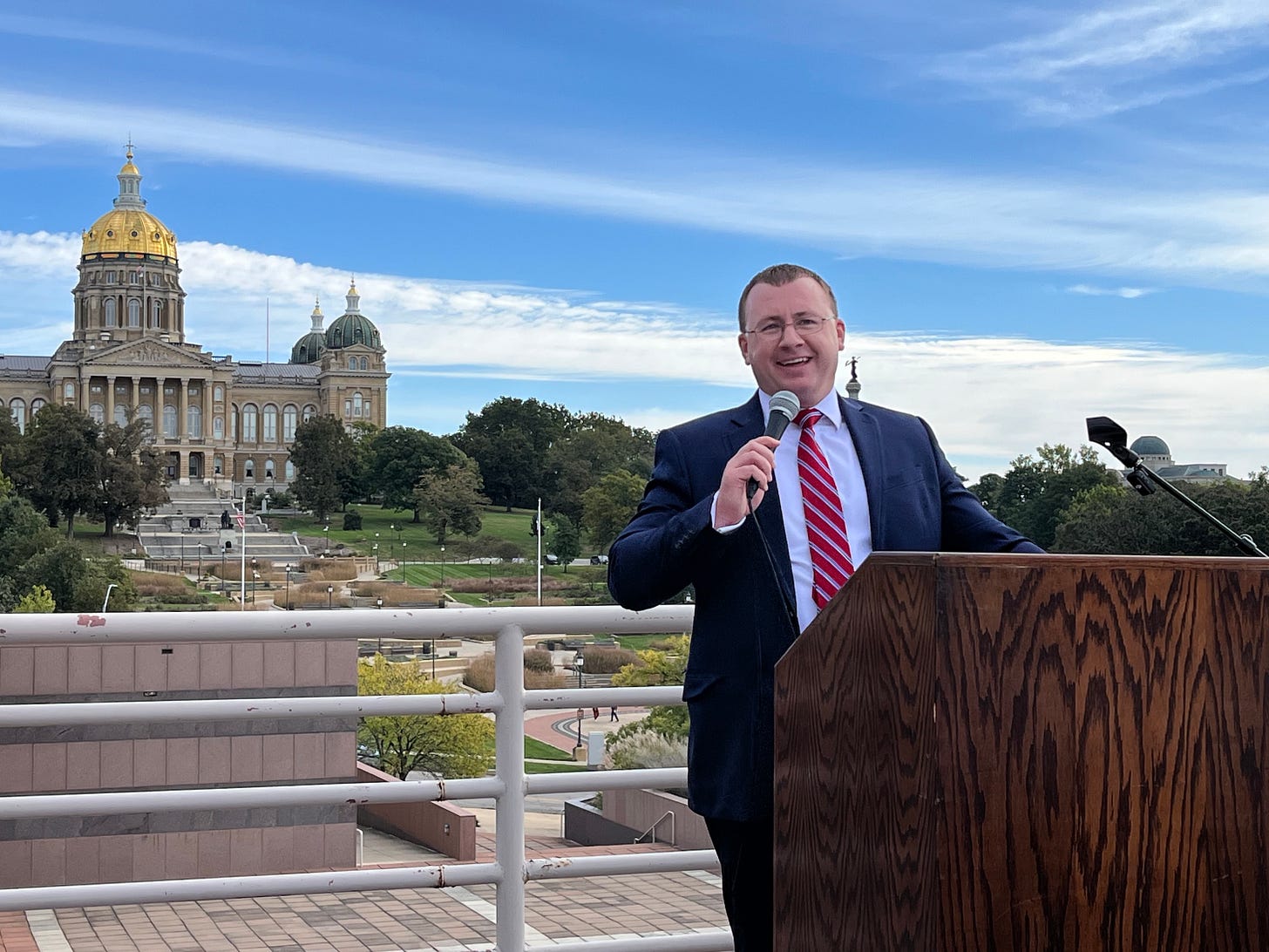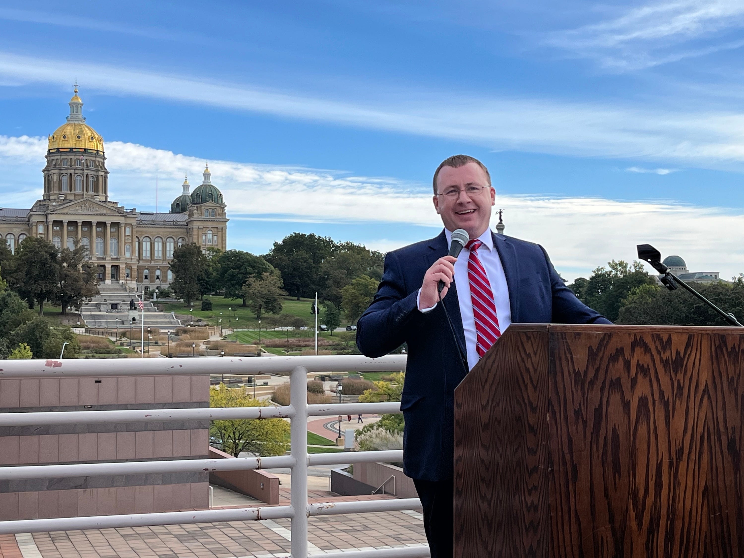 Here’s Laehn’s first speech as a Senate candidate in its entirety, delivered from the terrace of Iowa’s State Historical Building in Des Moines, with the state capitol as a backdrop.