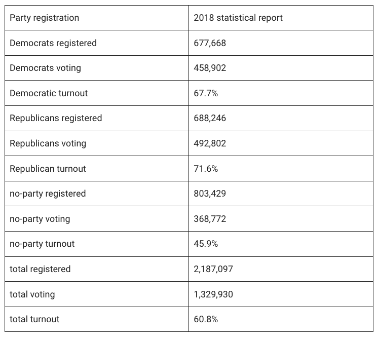 With low GOP turnout of 65 percent (what we saw in 2006), registered Republicans would have cast about 447,000 ballots in 2018. Hubbell could have won just by staying even with Reynolds among no-party voters.