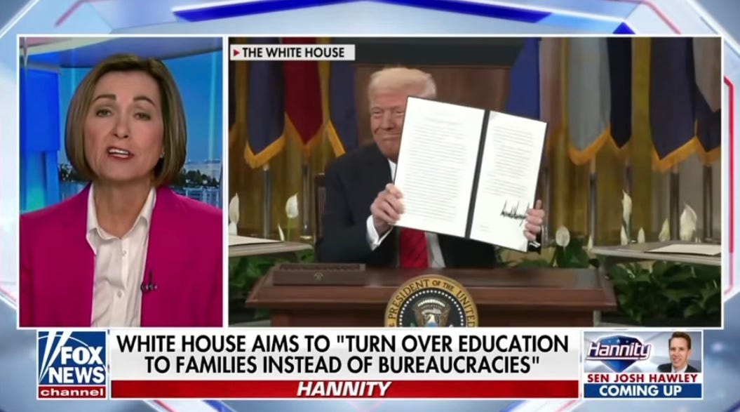 We started with Iowa angles on Trump administration news. Governor Kim Reynolds was in Washington, DC last Thursday to cheer on the president as he signed an executive order calling for Education Secretary Linda McMahon to take "all necessary steps to facilitate the closure of the Department of Education and return education authority to the states."